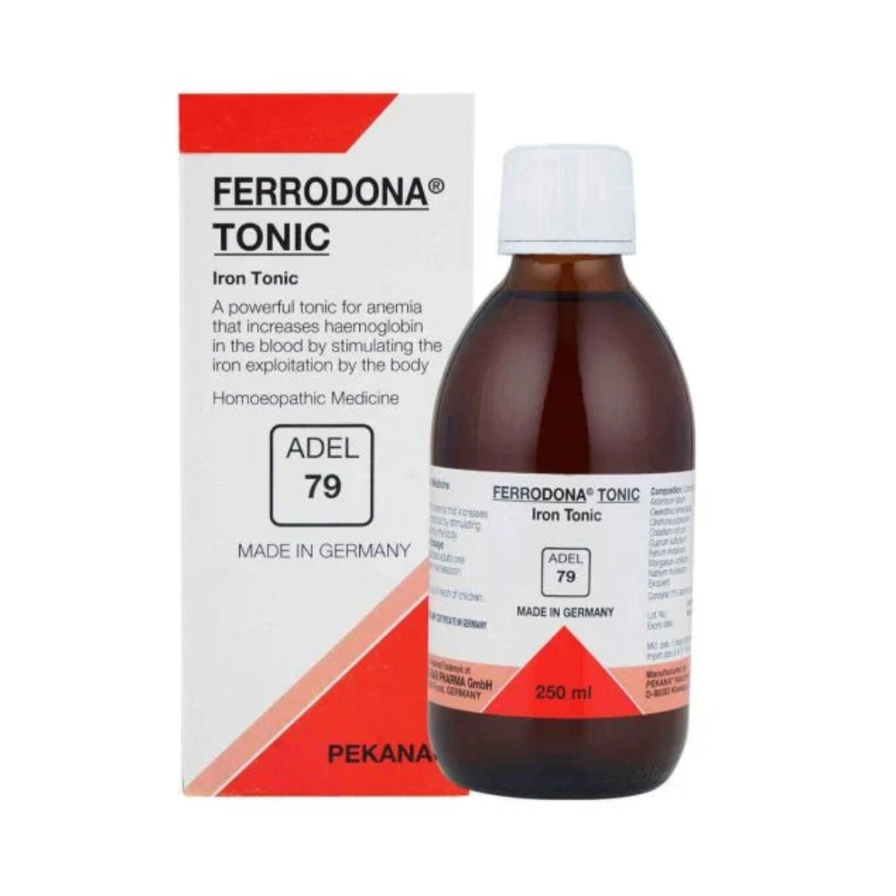 ADEL 79 (FERRODONA TONIC) syrup provide the body with high quality iron, help ensure the blood is supplied with essential minerals and rejuvenate the organs that furnish the body with blood. This preparation is especially important for women during pregnancy and following childbirth. And also in accidents that involve considerable loss of blood and treatment of acute or chronic illnesses. This remedy helps in the cases of poor nutrition.