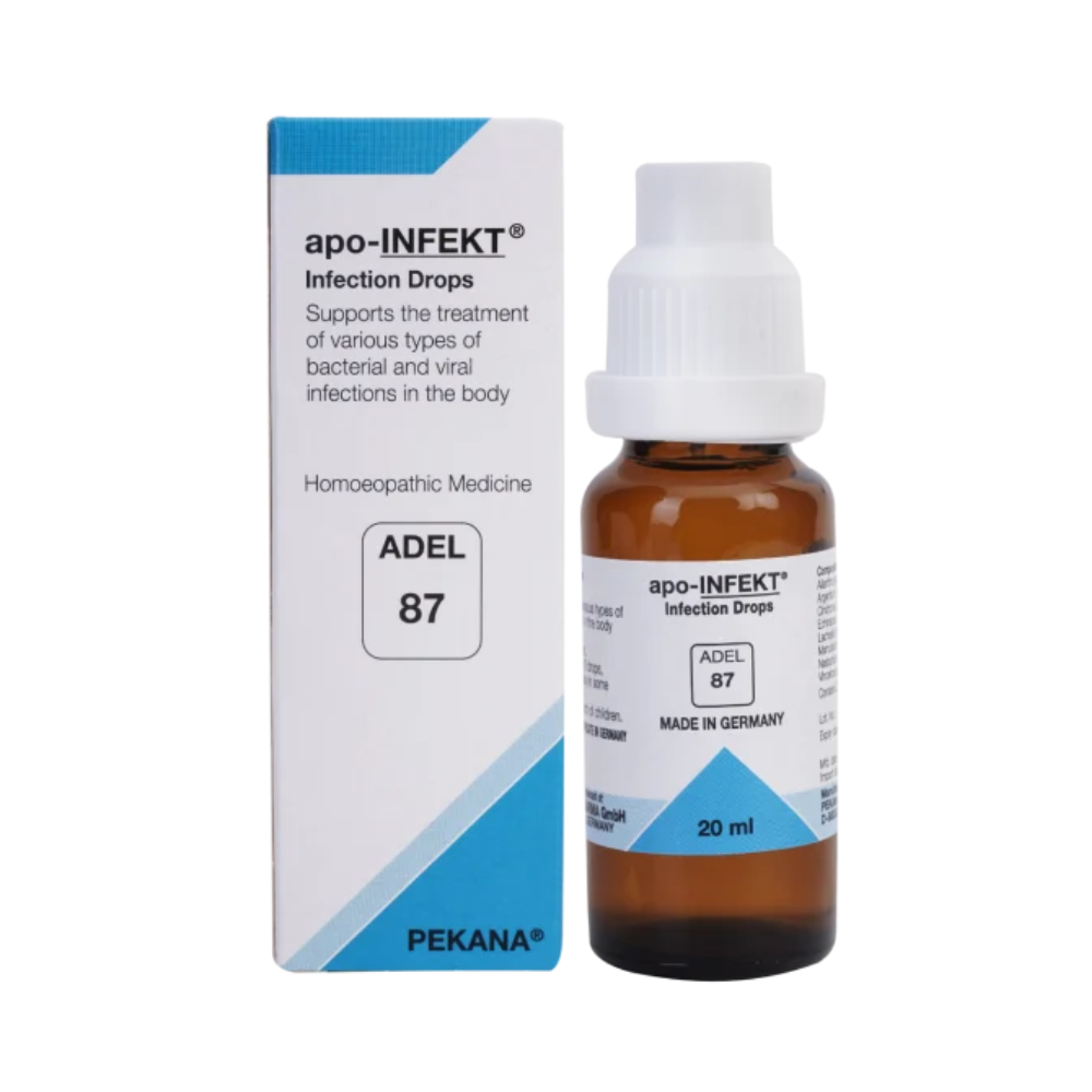 Acute bacterial and viral infections can be treated succesfully with the help of ADEL 87 (apo-INFEKT) drops, which work as an immune system stimulant and biological antimicrobial to eliminate pathogens. The antimicrobial qualities are essential for treatment of acute infections of the bladder, kidneys, bronchials and other organs. All pus-producing infection such as bronchitis, tonsillitis and otitis media indicate the need for ADEL 87 drops, which also stimulate the lymphatic system and address and accompanying symptoms such as fever and weakness. In addition ADEL 87 drops treat intestinal tract infections to help neutralize toxins.