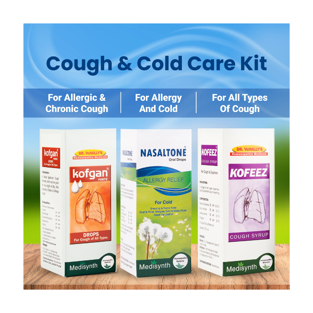 Cough and Cold Care Kit Contains Nasaltone Oral Drops(30ml), Kofgan Drops(30ml), and Kofeez Cough Syrup(200ml) 1 quantity each.