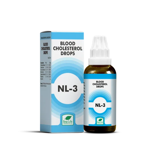 New Life NL-3 Blood  cholesterol  Drop is a combination of homoeopathic remedies that help regulate cholesterol levels. It also helps digest food and manage heart disorders